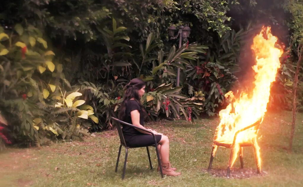Inspired by Maya Deren and her interactions with her own double, this short piece presents a mystical encounter between a woman (the artist herself), her double, and an enigmatic presen
